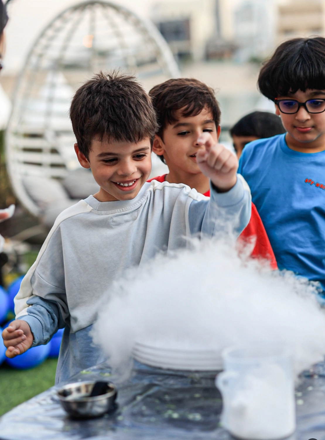نقدّم برنامجًا ترفيهيًا – علميًا للأطفال يعتمد على أنشطة تفاعلية وابتكارات علمية حقيقية، تُقدَّم في:
